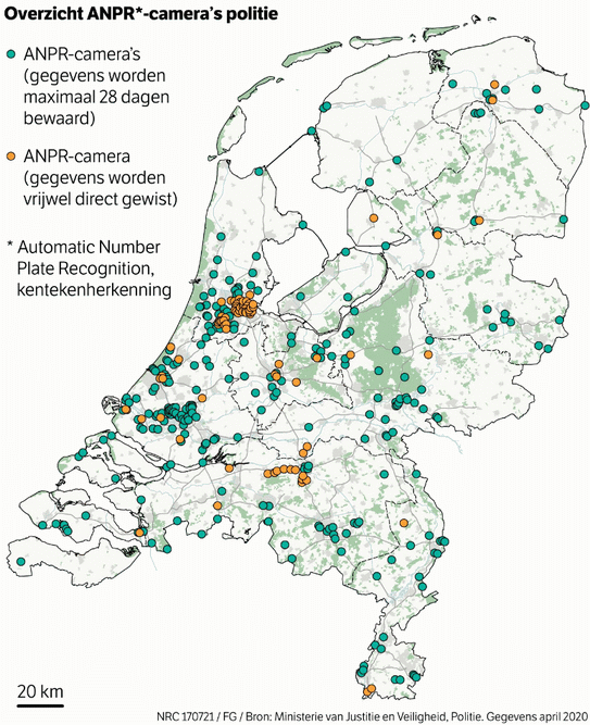 …Temidden van de beeldschermen van het Real Time Intelligence Center twijfelt de teamchef niet aan het belang van camerabeelden. Hij haalt de voormalige Amsterdamse hoofdcommissaris Joop van Riessen aan, die ooit zei dat er gewoon weer een slotgracht met ophaalbrug om Amsterdam zou moeten komen, om criminelen tegen te houden. „Automatische nummerplaatherkenning is nu eigenlijk onze slotgracht. De ringweg hangt zo vol met camera’s dat je niet ongezien blijft.”